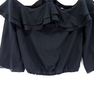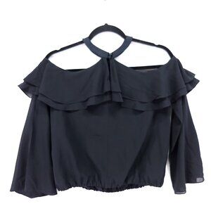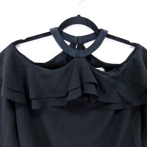 Alice + Olivia Silk Halter Top Size XS Cold Shoulder Ruffle Blouse Black