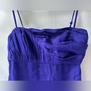This vibrant royal blue or deep purple camisole or strapless top features delicate spaghetti straps and a beautifully ruched or pleated bustline, offering a flattering and elegant silhouette. Crafted from a lightweight and flowy fabric, possibly chiffon or silk blend, this sleeveless piece is perfect for evening wear, a cocktail party, or a special occasion. Its versatile design allows it to be dressed up with a skirt or trousers for a formal event, or paired with jeans for a more chic casual look. This designer-inspired or boutique-style top is a wardrobe essential for adding a pop of color and sophistication to any outfit.