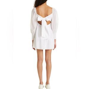 New with tag. Alice + Olivia Rowen Mini Dress In Off White With Smocked Cuffs, Tiered Design, Open Back, And Self-Tie Back Straps