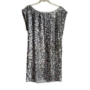 Alice + Olivia Silver Sequin Silk Mini Dress M Y2K Cocktail Party Metallic