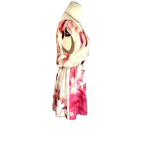 Alice + Olivia Size Medium Pink Silk Dress Floral Blouson Mini Barbiecore