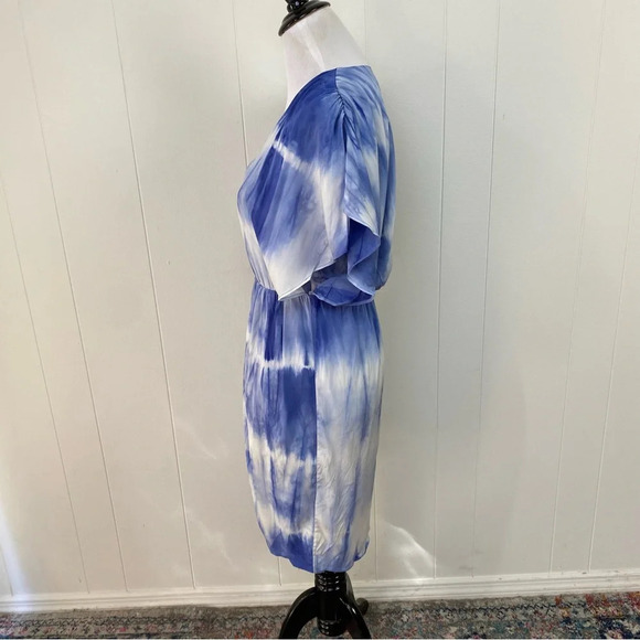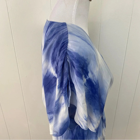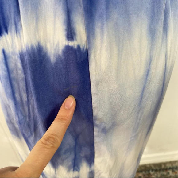 Alice + Olivia Size XS Silk Tie Dye Cloud Print Flowy Button Dress Blue White