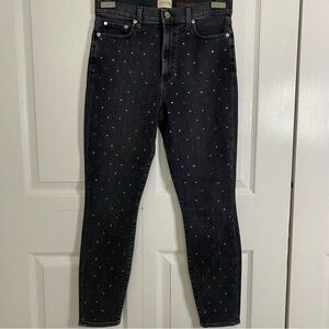 Alice + Olivia Skinny Leg Black Jeans Multicolor Crystals Print Mid-Rise size 28