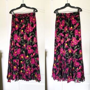 Alice + Olivia Skirt Elza Silk Pleated Floral Maxi California Poppy 6 EUC