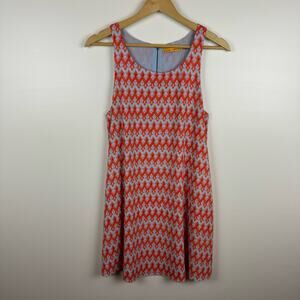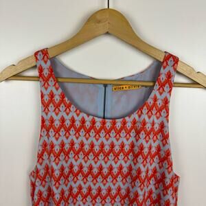 Alice + Olivia Sleeveless Shift Dress in Orange Blue Sz S | Bold Flowy Vibrant