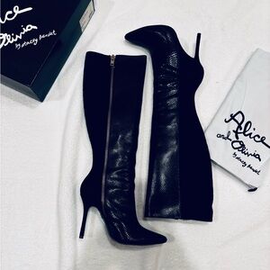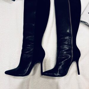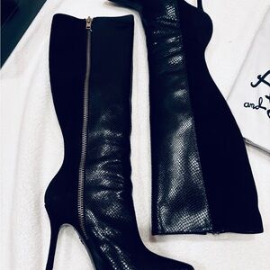 Donovan Snake-Print/Suede Boot, Black. Original box and dust bag included!