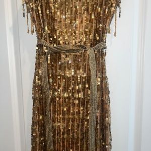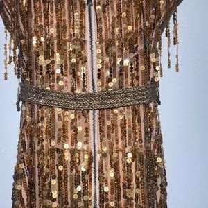 Alice + Olivia Sonja Sequin Mini Dress in Bronze, Size 4