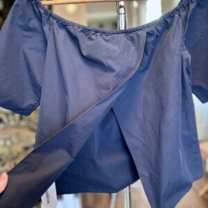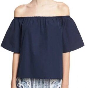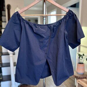Alice + Olivia Off the Shoulder Crosby Top Blouse Split Back Navy - breezy and effortlessly chic!