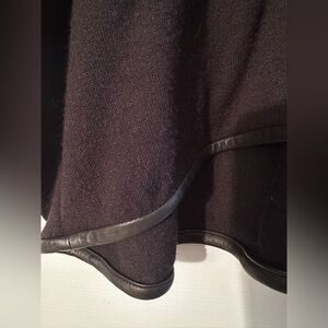 Very soft short sleeve turtleneck sweater with lamb leather trim around cuffs and hem.