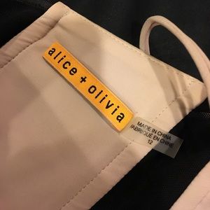 Amazing Alice + Olivia strapless dress- only worn once for a wedding and unfortunately too small for me now. You will get endless compliments - I sure did. It's a beige dress with leather at the waist level. It's a corset top and a zip close. You don't even need a bra! Absolutely beautiful with or without a cardigan or shawl.