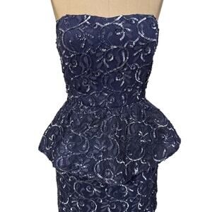 Alice + Olivia Blue Sequin Strapless Peplum Mini Dress size 8