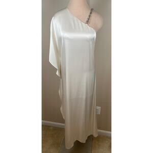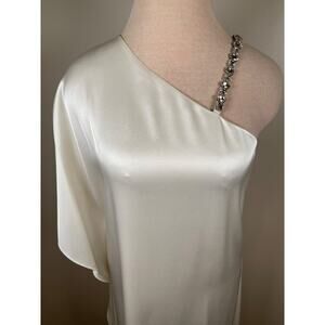 Alice + Olivia Tae Crystal Strap Asymmetric White Satin Maxi Dress Size 0