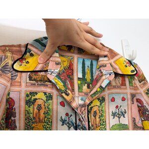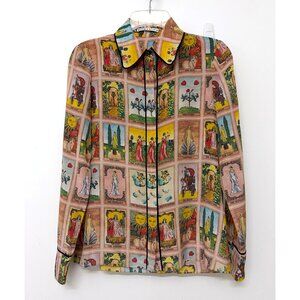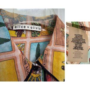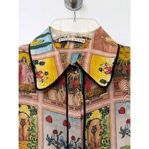 Alice + Olivia Tarot Card Alfie Silk Blouse Collared Top Mystical Print Shirt XS