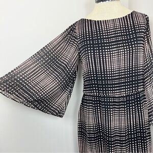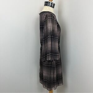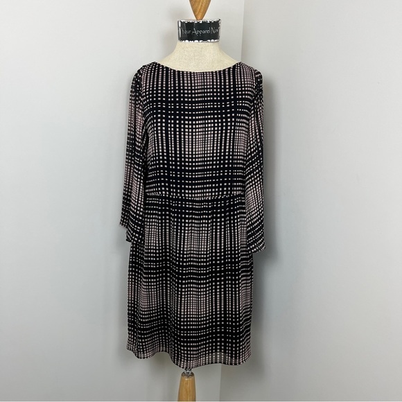 Alice + Olivia Plaid Print Mini Dress Size S, neutrals, three quarter sleeve with bateau neckline, exposed zip closure at back.