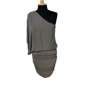 Alice + Olivia Taupe One-Shoulder Draped Mini Dress – Silk Blend Large Gray