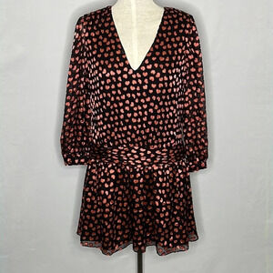Alice + Olivia Tessie Drop Waist Heart Print Silk Blend Dress - Size 8