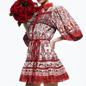 Alice + Olivia Tiffie Puff Sleeve Mini Paisley Floral Dress Size 12