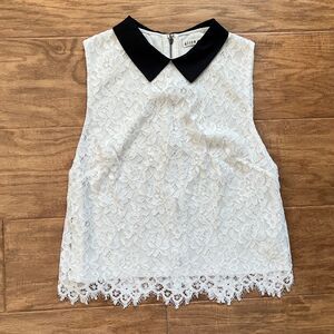Alice + Olivia Top Size 2 Wylie Sleeveless Lace Collared Boxy Cream/Black
