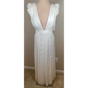 Alice + Olivia Vanna Ruffle Flutter Sleeve Eyelet Embroidered Maxi Dress Size 0 is brand new with tags! Sold out everywhere!
