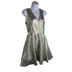 Alice + Olivia Varita Metallic Jacquard Cut Out Fit Flare Dress