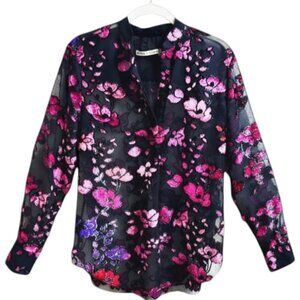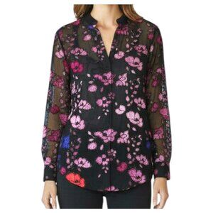 Alice + Olivia Velvet Flocked Sheer Chiffon Floral Blouse Black Size XS