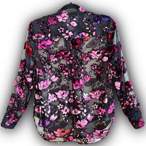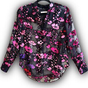 ✨ Alice + Olivia Floral Velvet-Flocked Sheer Chiffon Blouse – Size XS ✨