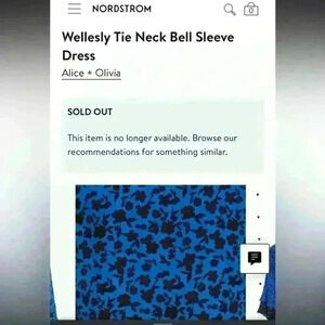 Alice + Olivia Wellesly Tie Neck Bell Sleeve Navy Blue Size S/Small. Features chiffon Tie bow on neckline, polka-dot detailing floral print, pullover style, V-veck, 3/4 bell sleeves