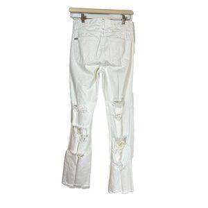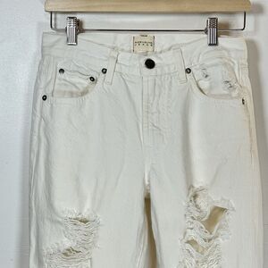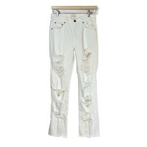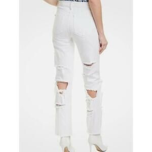 Alice + Olivia White Genevive Extreme Distressed Straight Leg Jeans Women 26