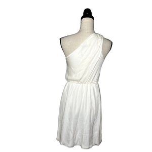 Alice + Olivia White One Shoulder 100% Silk Fitted Waist Mini Linds Dress Sz XS