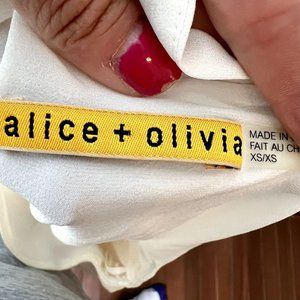 Showcase your elegance in this Alice + Olivia white one shoulder mini Linds dress in size XS. Crafted with 100% pure silk, it features a fitted waist that flatters your figure beautifully.