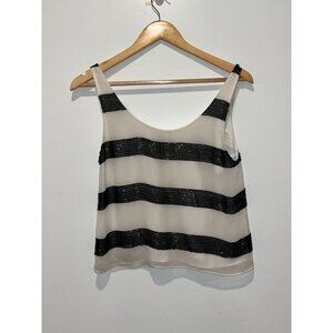 Sheer White Silk Tank Top With Black Sequined Stripes Women's Size s