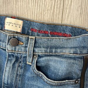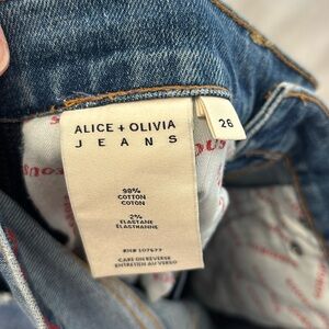 Alice + Olivia You Look Gorgeous Wide Leg Baggy High Rise Blue Jeans with side zippers size 26