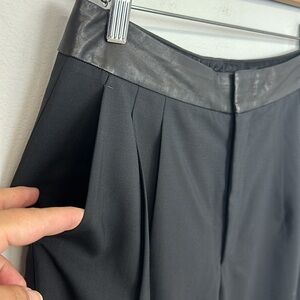 Alice + Olivia Wide Leg Wool with Lamb Leather Trim Trouser Pants Sz 4