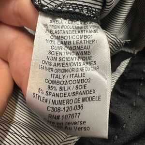 Black Alice + Olivia Wide leg Wool trousers with lamb leather trim on the waist and back pockets. Great to wear out or for the office.
