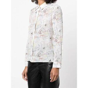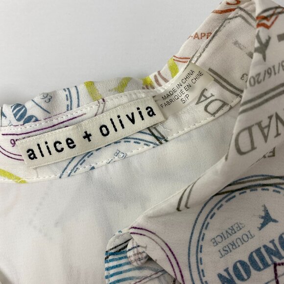 Alice + Olivia Willa Globe Trotter Stamp Silk Blouse Small