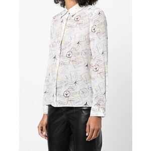 Alice + Olivia Willa Globe Trotter Travel Stamp Print Shirt Silk Top Postcard XS