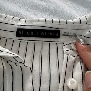 Alice + Olivia Willa Silk White and Black Stipe Bodysuit Blouse