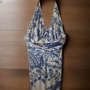 Alice + Olivia Women Silk Blue Floral A-Line Hatler Maxi Dress Size M