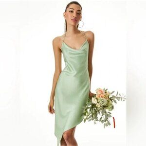 Alice + Olivia Women Slip Dress Green Harmony Asymmetrical Deep Cowl Size 8