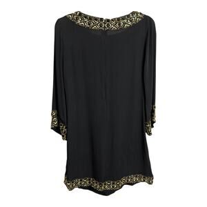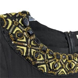 Alice + Olivia Women's A-Line Dress Black Silk W/ Gold Sequins Puff Sleeve Sz S