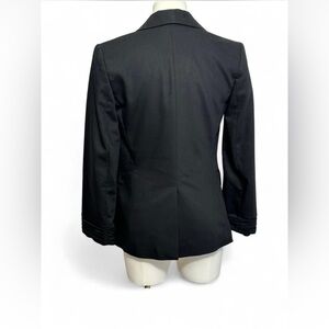 Chic and tailored. This black button-up blazer by Alice & Olivia features a sharp, structured fit with a feminine touch. Subtle detailing at the wrists adds a unique edge, perfect for dressing up a work look or layering over a going-out outfit. High-quality construction with a flattering silhouette.