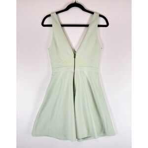 Alice Olivia Womens Dress Green Nina Box Pleat Fit Flare V Neck Cut Out Size 0