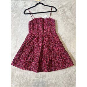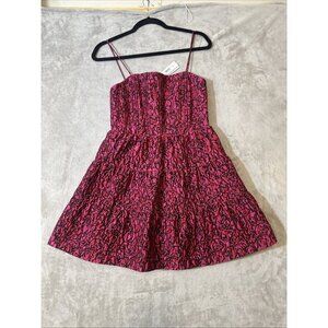 Alice + Olivia Women's Pink Floral Jacquard Squared-Neck Mini Dress Size 4