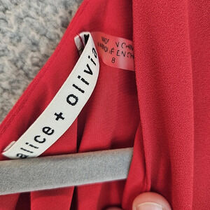 Alice & Olivia Womens Red Crepe Mini Dress Sz 8 Ties in Back Lined Ruby Red