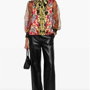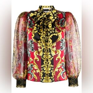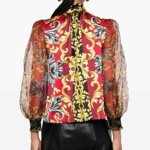 Alice & Olivia Women's Red and Gold Baroque Print Blouse NWOT $395 retail