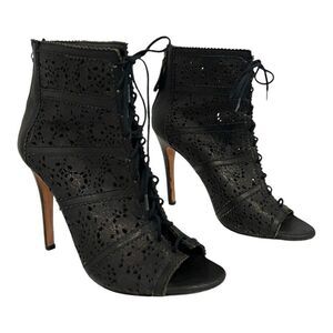 Alice + Olivia Womens Size 39 US 9 Gale Leather Laser Cut Lace up Booties