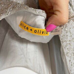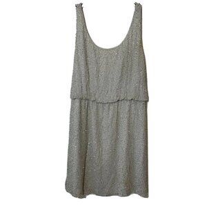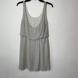 Alice + Olivia Womens Sleeveless Beaded Dress Gray 6 Scoop Neck Deep Back Silver