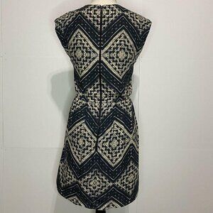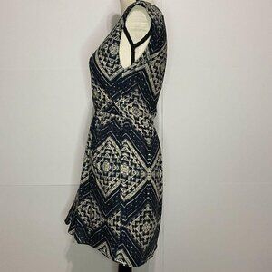 Alice + Olivia Womens Small Abstract A-Line Dress Navy Tan Rayon EUC