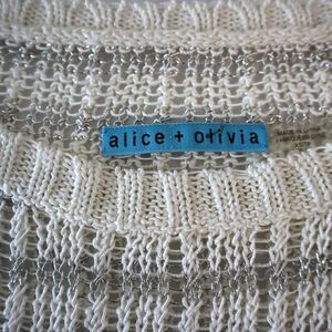 Alice + Olivia Womens Sz XS Cream/Silver Metallic Stripe Ethan Boxy Sweater $297