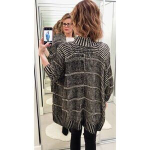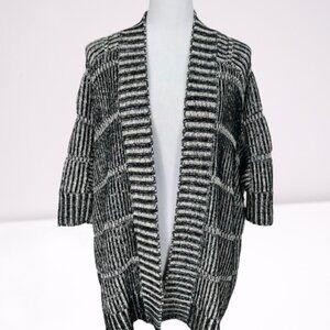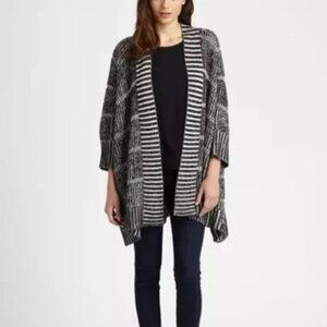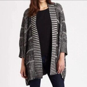 Alice + Olivia Wool Blend Nera Rib Knit Oversized Cardigan Size XS Black/White